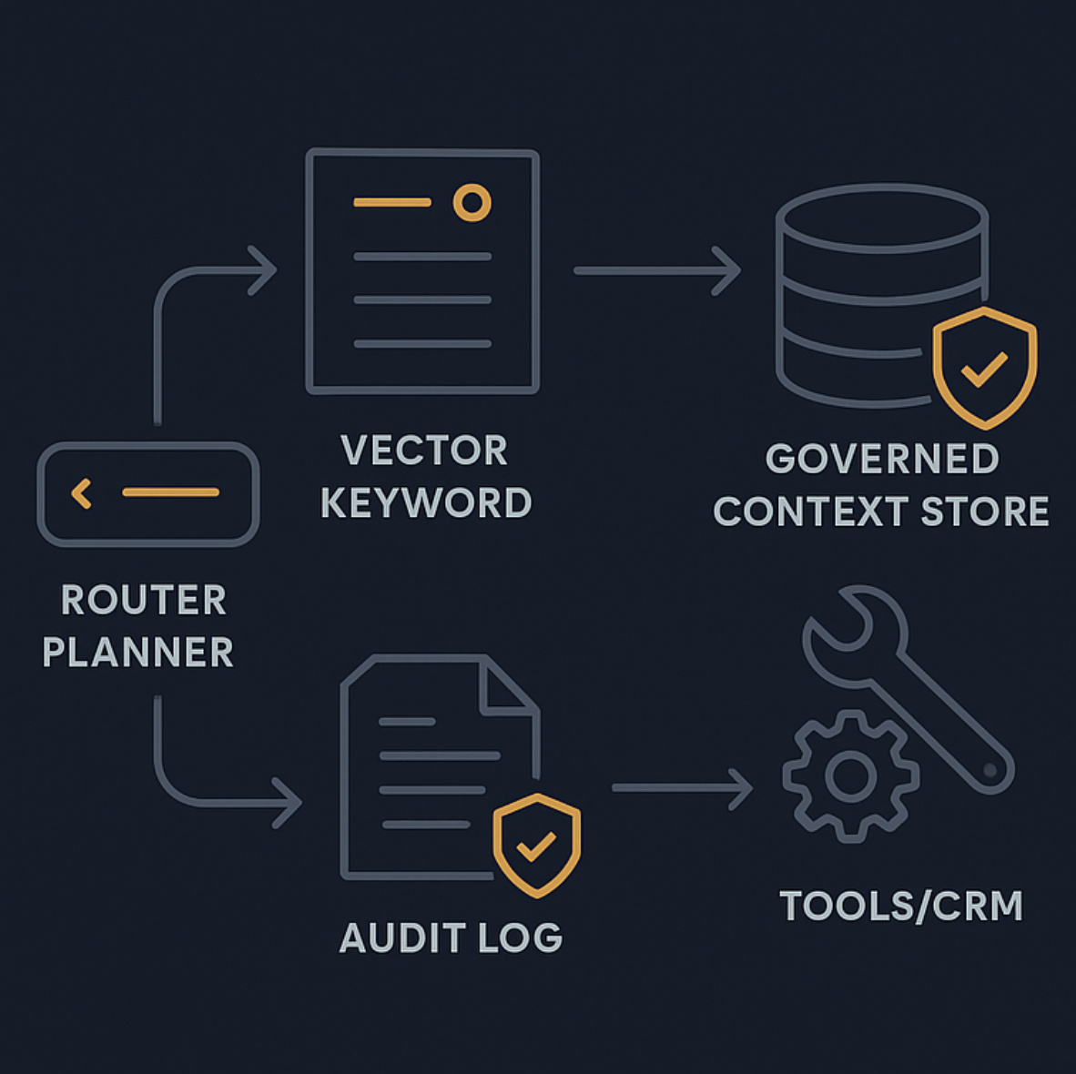本番構成は一本の pipeline ではありません。guardrail を持つ decision system です。