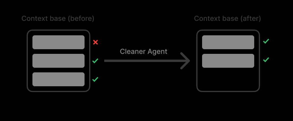 その代わり、クリーナーエージェントはゴミフィルターのように機能します。関連性のないソースを丸ごと削除し、関連性のあるソースは100%オリジナルのまま、完全に保持します。